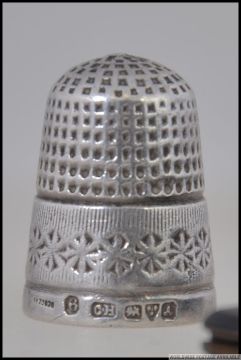 A silver hallmarked mother of pearl inlaid tortoiseshell pen knife by Alfred Taylor, Birmingham 1866, weight 13.0g. Together with a silver hallmarked coin holder by E J Houlston, Birmingham 1911, hinge off, weight 16g and a silver hallmarked thimble by Charles Horner, Chester 1901. weight 6.2g