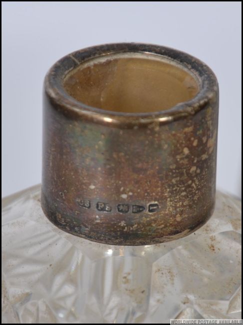 Perfume bottles to include an Eiffel Tower, two silver collard cut glass bottles, a Chinese sent bottle along with a cut glass crystal bowl with inscription for The Marley Wheelchair Classic.