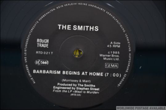 The Smiths - A 12" The Smiths German import single for ' Barbarism Begins At Home and Shakespeare's Sister ' only being played once and then archived by the vendor. The vinyl being near mint having picture sleeve with Viv Nicholson front and back.