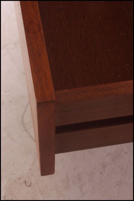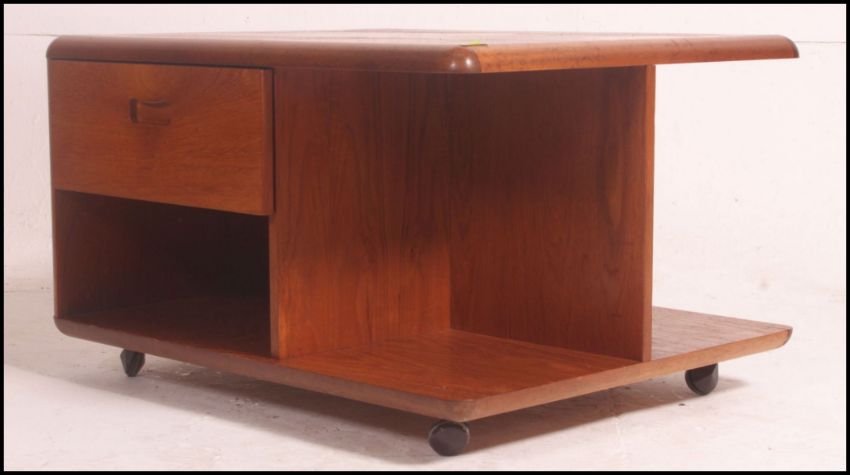 A good 1970's Danish Pandora's box type teak wood coffee table of square form, raised on castors with sectional body. 43cm high, 74cm wide, 61cm deep