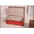 A retro style red canvas bound 20th century steamer trunk with hinged centre and black bindings