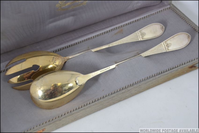 A cased silver 800 marked pair of salad servers by Wilkens & Soehne, Bremen, Germany complete in the original presentation case. 192g L26cm