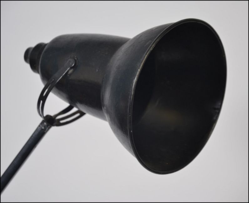 An original 1940's Herbert Terry two step anglepoise Industrial desk lamp having square terraced base with pendant shade.