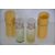 A pair of Edwardian glass perfume bottles having screw on polished metal lids, glass stoppers and ivory cases. Measures: 9cms high.