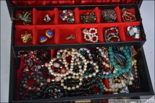 3 tier locking jewellery casket containing a very large amount of mixed costume jewellery