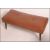 A 1950's brown vinyl upholstered low footstool raised on ebonised tapering dansette legs. Measures: 38cms high x 93cms wide x 42cms deep.