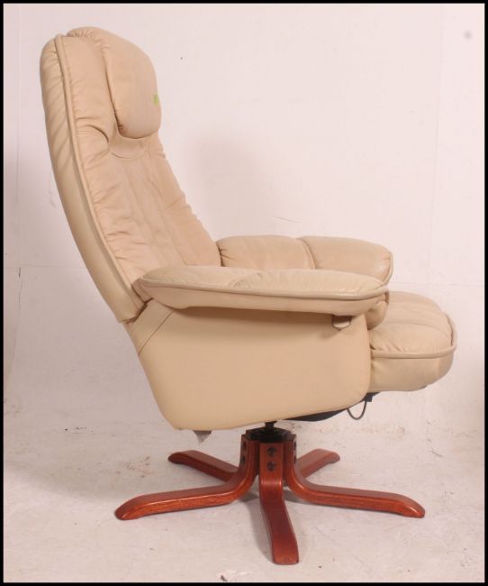 A good ivory leather swivel reclining armchair by Mobelteam - Sweden being fully badged. Size M 102cm high, 83cm wide, 92cm deep