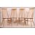 A set of 4 Ercol beech and elm Goldsmiths dining chairs with railed back rests over saddle seats and turned legs. Measure: 98cms high x 42cms wide x 47cms deep.