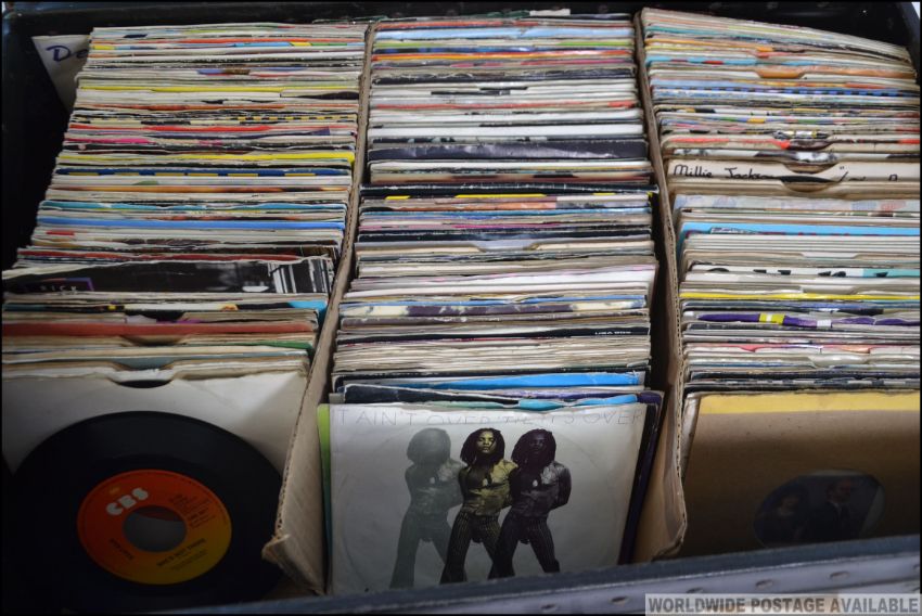A large collection of 7" vinyl record singles all being from an ex 1980's and 1990's mobile DJ all within a travel case to include artists such as Van Morrison, Talk Talk, New Order, Rick Astley, ABC, Labi Siffre and many many many more artists. Approx 400 plus singles.