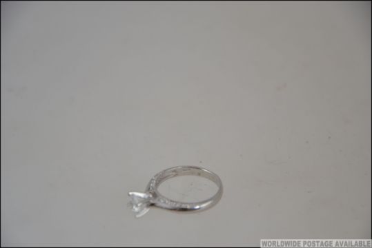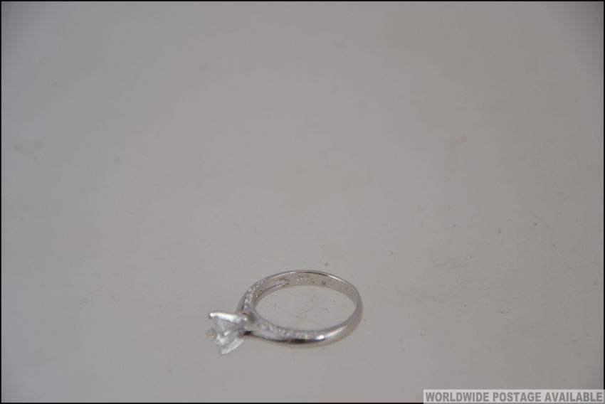 A silver 925 white metal and CZ engagement ring