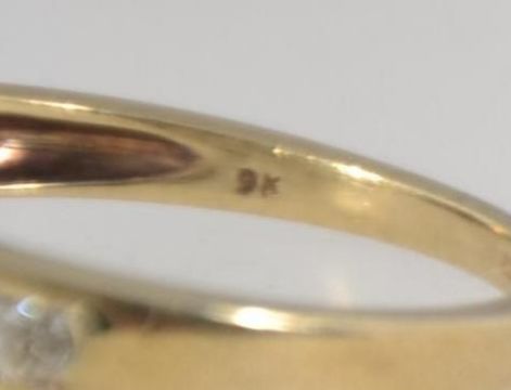 A 9ct gold and diamond ring with central diamond cluster and channel set diamond shoulders. Total diamonds approx 47pts. Marked 0.47. CCM Mark. Hallmarked assay office mark rubbed possibly for London. Size L. Weight 2.3g.