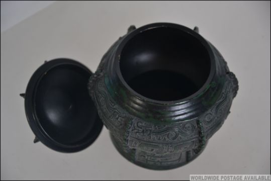 A 20th century Chinese bronze lidded censor bowl. Measures: 10cms high.