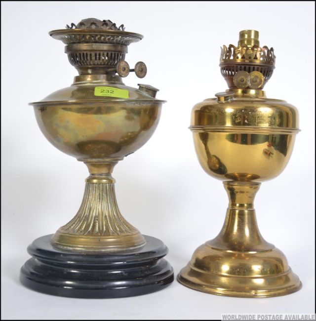 A pair of non matching early 20th century brass oil lamps. Measures: 32cms high.