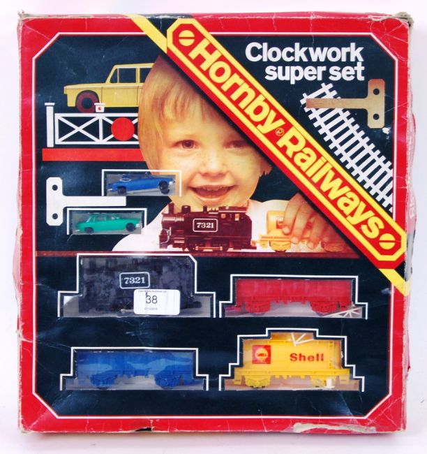 HORNBY: An original vintage Hornby 00 gauge ' Clockwork Super Set '. Appears to be complete, within the original box.