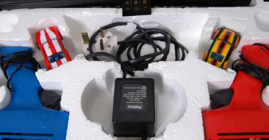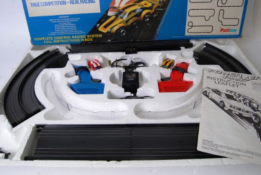 POWER PASSERS: An original vintage Palitoy made ' Power Passers ' electric racing car set. ' Lane Change Super 5 Set '. Within the original box. Does appear to be complete, with original cars etc. Sold as unchecked.