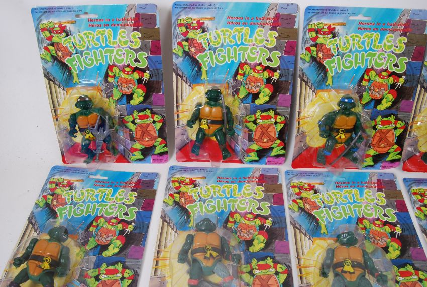 TURTLES FIGHTERS: A collection of 10x Teenage Mutant Ninja Turtles bootleg action figures ' Turtles Fighters '. Each carded and unsued