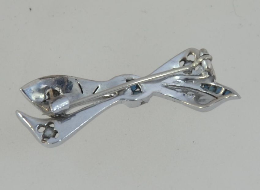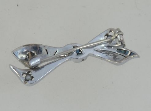 A silver and marcasite brooch in the form of a bow . Pin verso. Weight approx 8g