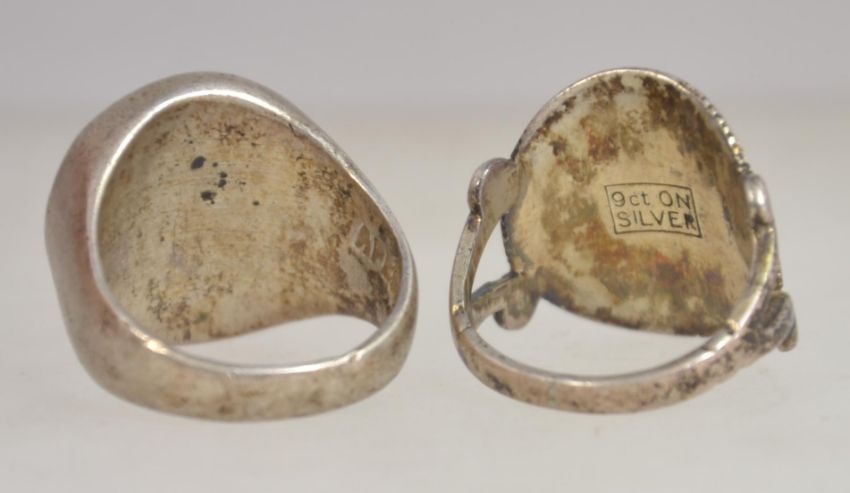 2 silver vintage rings to include Siam silver signet ring and a sun agate faced signet ring. Size M & K. Weight 14.6