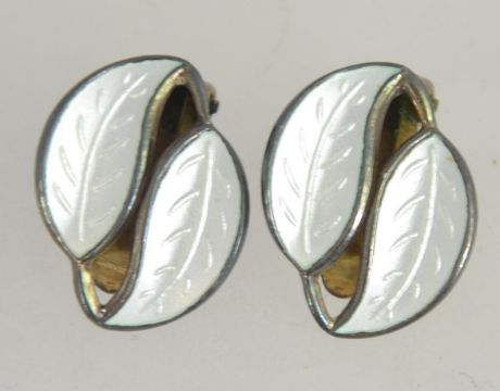 A vintage Norwegian pair of silver and enamel set clip on earrings by David Anderson. Marked 925 Norway with makers marks. Weight 3g / 1cms long.
