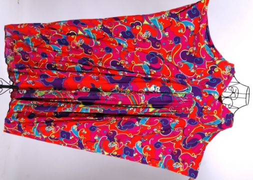 1960's DRESS: A vintage original 1960's psychedelic Kaftan dress with Pucci style print on the ' Dollyrocker's ' label designed by Sambo. NOTE: From a large private collection of assorted theatrical costumes, fancy dress outfits and vintage fashion. Ex- Dauphines Costume Hire of Bristol. Many of the theatrical costumes are relics of TV / Film history (some appearing in TV shows as far back as the 1950's), and also of both professional and amateur stage performances. CONDITION: Condition of most items is good. Theatrical items will show signs of expected wear and tear through use, but most are generally very good. Buyers are reminded for the need to satisfy themselves as to condition of items prior to bidding, as condition on some, will vary. SIZING: Sizing, where present on the garment is given. Other sizes stated are to be taken as an approximation only. Where no size is listed, no sizing information is available, although for reference, our display mannequin is a small/medium built. VIEWING: The costumes and items from this sale will be available for viewing on Weds 7th September from 9am - 7pm. They are in a separate location to our usual sales so please ask at reception. Viewing at other times is available, but strictly by appointment only. POSTING / COLLECTION: UK postage will be £15.99+VAT per parcel, Europe from £19.99+VAT. Rest of the world, please contact us for a quote. We're happy to combine items (a 'parcel' will typically hold 2-5 costumes). Collection welcome at our premises any time within 7 days after the sale.