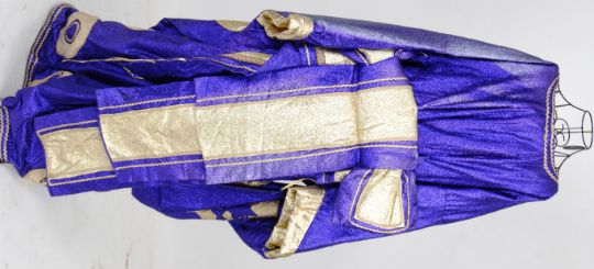 EMPRESS: An Empress style fully lined Lame purple fabric with applied motifs and obi, with long train coat . NOTE: From a large private collection of assorted theatrical costumes, fancy dress outfits and vintage fashion. Ex- Dauphines Costume Hire of Bristol. Many of the theatrical costumes are relics of TV / Film history (some appearing in TV shows as far back as the 1950's), and also of both professional and amateur stage performances. CONDITION: Condition of most items is good. Theatrical items will show signs of expected wear and tear through use, but most are generally very good. Buyers are reminded for the need to satisfy themselves as to condition of items prior to bidding, as condition on some, will vary. SIZING: Sizing, where present on the garment is given. Other sizes stated are to be taken as an approximation only. Where no size is listed, no sizing information is available, although for reference, our display mannequin is a small/medium built. VIEWING: The costumes and items from this sale will be available for viewing on Weds 7th September from 9am - 7pm. They are in a separate location to our usual sales so please ask at reception. Viewing at other times is available, but strictly by appointment only. POSTING / COLLECTION: UK postage will be £15.99+VAT per parcel, Europe from £19.99+VAT. Rest of the world, please contact us for a quote. We're happy to combine items (a 'parcel' will typically hold 2-5 costumes). Collection welcome at our premises any time within 7 days after the sale.