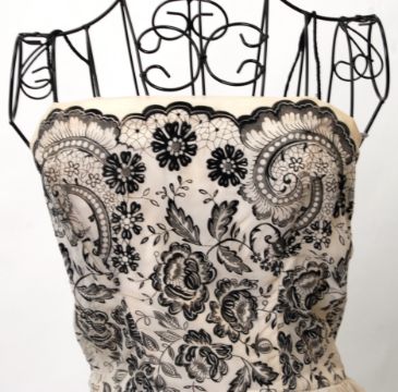 1960's DRESS: An original vintage 1960's cream chiffon dress with black floral flocked detailing , nipped to waist with boned bustier top. NOTE: From a large private collection of assorted theatrical costumes, fancy dress outfits and vintage fashion. Ex- Dauphines Costume Hire of Bristol. Many of the theatrical costumes are relics of TV / Film history (some appearing in TV shows as far back as the 1950's), and also of both professional and amateur stage performances. CONDITION: Condition of most items is good. Theatrical items will show signs of expected wear and tear through use, but most are generally very good. Buyers are reminded for the need to satisfy themselves as to condition of items prior to bidding, as condition on some, will vary. SIZING: Sizing, where present on the garment is given. Other sizes stated are to be taken as an approximation only. Where no size is listed, no sizing information is available, although for reference, our display mannequin is a small/medium built. VIEWING: The costumes and items from this sale will be available for viewing on Weds 7th September from 9am - 7pm. They are in a separate location to our usual sales so please ask at reception. Viewing at other times is available, but strictly by appointment only. POSTING / COLLECTION: UK postage will be £15.99+VAT per parcel, Europe from £19.99+VAT. Rest of the world, please contact us for a quote. We're happy to combine items (a 'parcel' will typically hold 2-5 costumes). Collection welcome at our premises any time within 7 days after the sale.