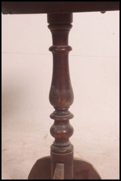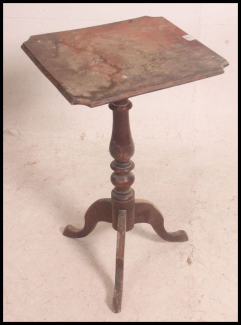 A 19th century tilt top wine table raised on splayed legs with turned column having square tilt top above. 71cm high x 44cm wide x 44cm deep