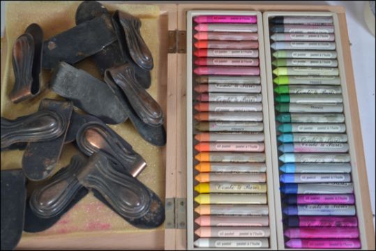 A LARGE collection of assorted art / artists tools, paint and paper etc. Ex Michael Coote collection - including many brushes, easel, unused cartridge paper etc. Quantity.
