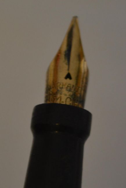 A 1930's Art Deco fountain pen with gold plated cover to barrel and cap having a 14ct nib.