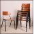 A stack of 10 mid 20th century school chairs being raised on ebonised tubular metal supports with panel seats and back rests 75cm high x 43cm wide x 54cm deep.