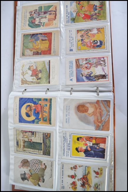 COMIC POSTCARDS. Collection of 116 in album. Mostly vintage around the pre 2nd war era. Usual themes: seaside, drink and fat ladies.