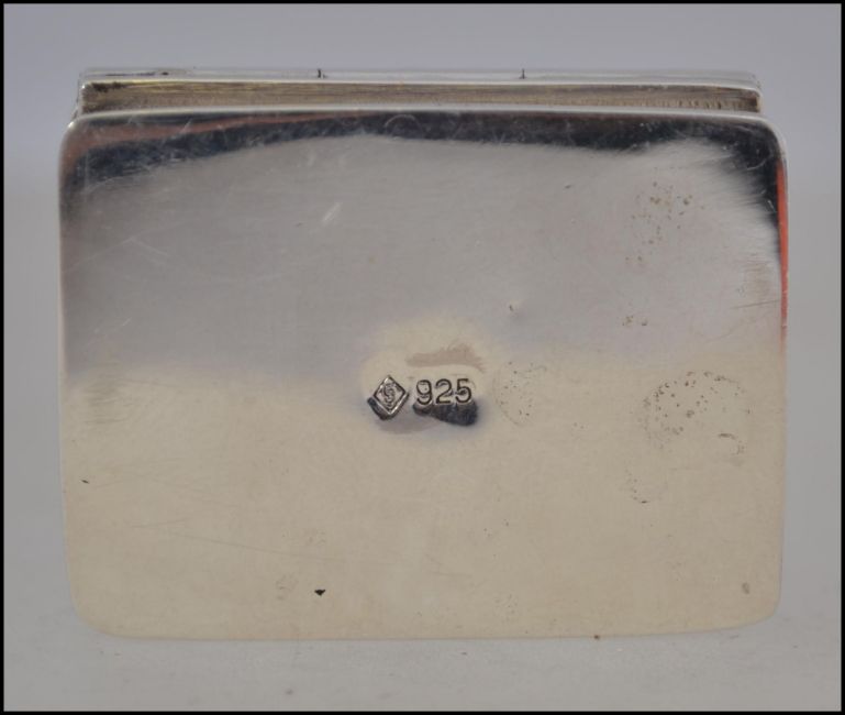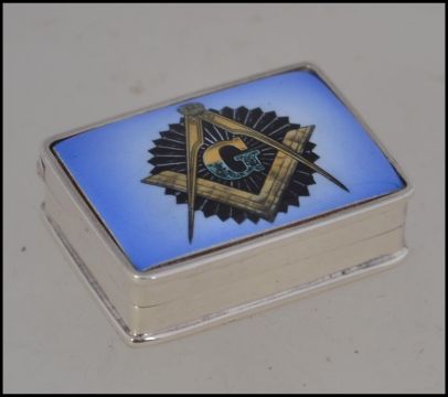 A silver 925 pill box with enamel Masonic symbol to the lid. Stamped 925 to base W4cm