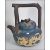 A Large Chinese Terracotta Kettle, a blue ground with a dragon raised to one side, a phoenix to the other. The tall handle is formed to simulated tree branches, and the kettle lid is overlaid with fruit and flowers, back stamped. 13.5"/34cm tall