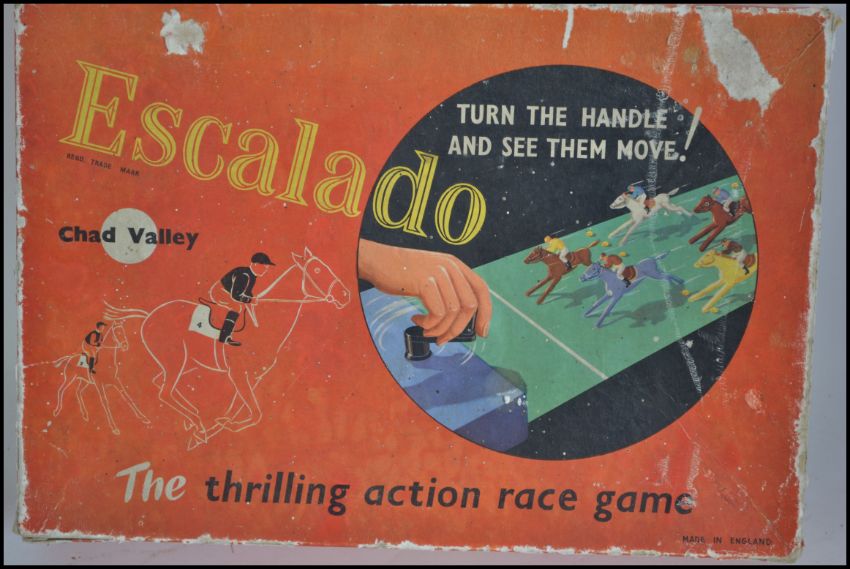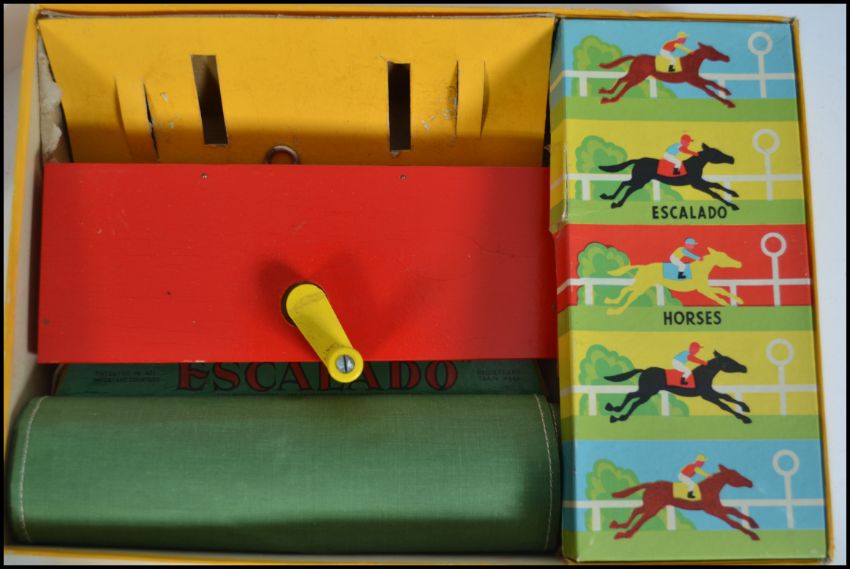 An original vintage Chad Valley made Escalado table top horse racing game, complete, with all horses in lead. Original box.