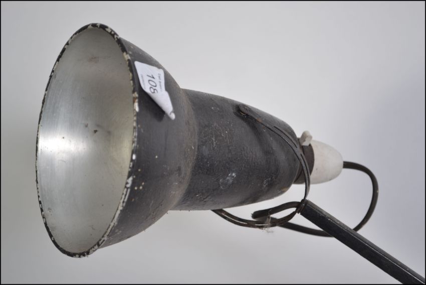 A vintage mid 20th century two step anglepoise desk lamp with all over blackened finish stamped Herbert Terry, Redditch H73cm