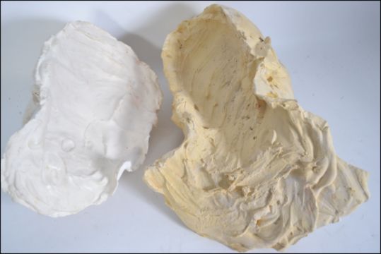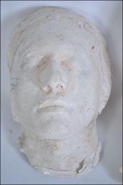Two plaster cast death masks the first of middle aged man and the second belonging to a female please see images L38cm