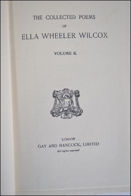 Collected Poems, Wheeler Wilcox, E. Three volumes. Gay & Hancock Pub. London 1919. Blue cloth binding, with strawberry motifs to spines.