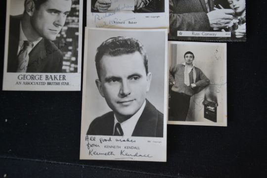 Autographs; A small selection of autographs to include a small signed photograph of Spike Milligan, Richard Baker, George Baker and Kenneth Kendall.