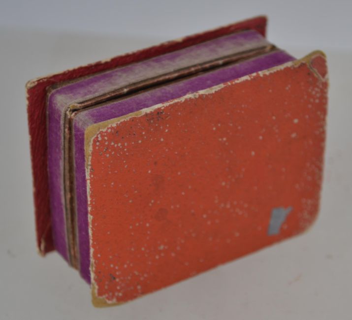 A 19th century card gilt and Applique needle case having metamorphic action, the interior with scene of children playing
