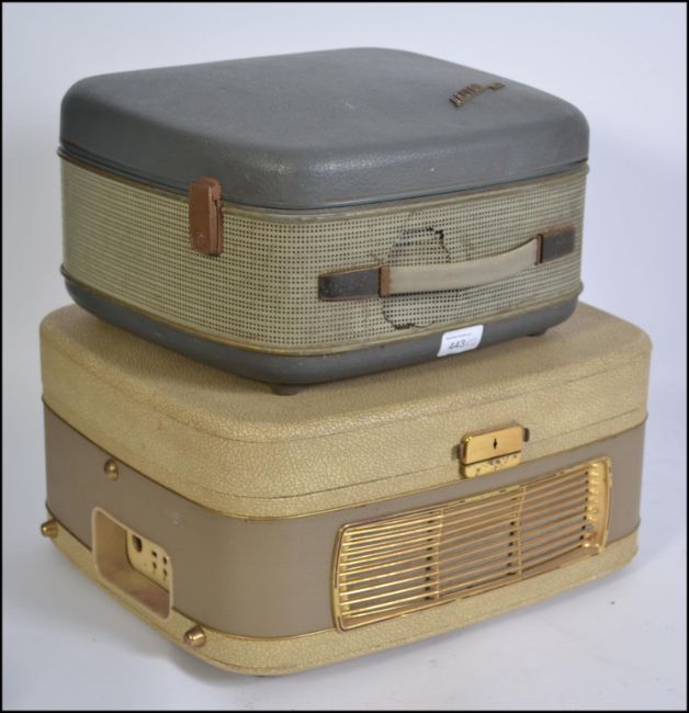 A vintage Grundig portable reel to reel tape player along with a vintage Cossar reel to reel portable tape player
