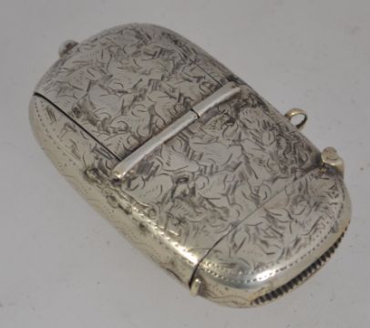 An unusual Victorian silver plated match vesta, sovereign holder and stamp holder case. Neatly engraved with florals to the exterior, and dated 1898 to front. 47.1g