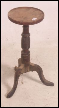 A 19th century mahogany wine table. Of small form with circular small top over turned column and splayed leg base. 64cm high x 40cm wide x 35cm deep