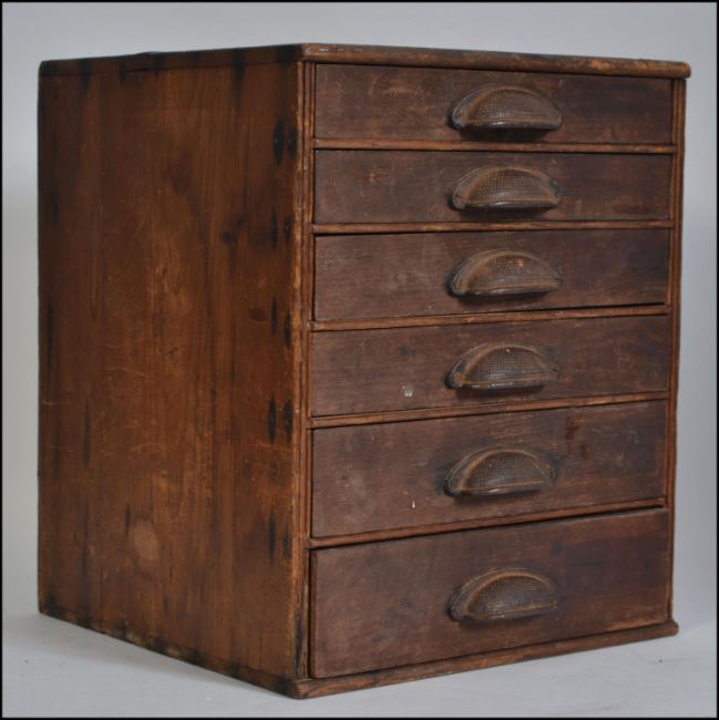 A vintage industrial watch makers / engineers tool cabinet chest H35xW28xD28cm