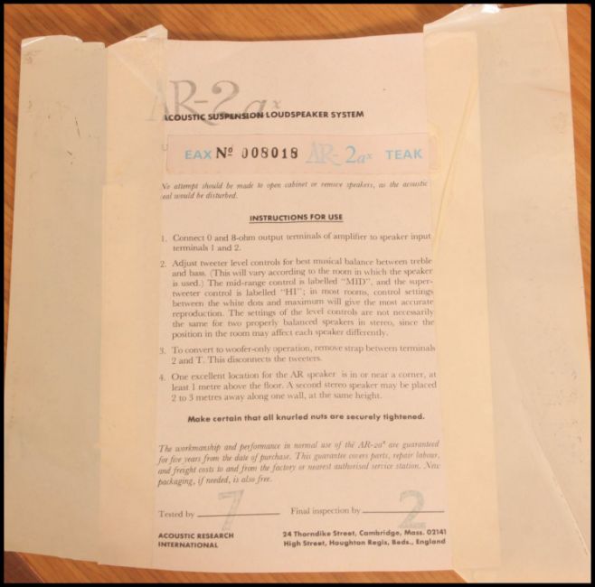 A pair of vintage Acoustic AR-2AX speakers complete in the original boxes