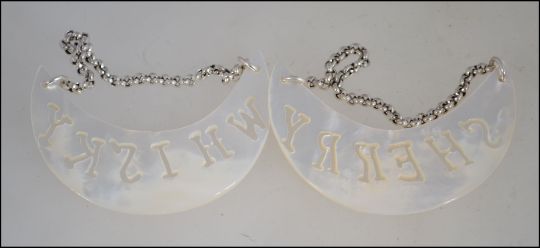 A pair of mother of pearl decanter labels for whisky and sherry W7cm