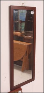 2 frameless mirrors on teak backs , both retro vintage mid century along with a teak and brass standard lamp. 150cm high x 31cm wide diameter