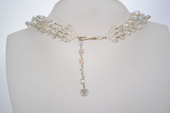 Three strand necklaces dating from the 1950's/60's of large graduated in foiled rhinestones. Contains a roller catch and bolt ring. 41.5cm long.