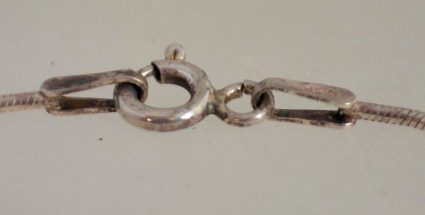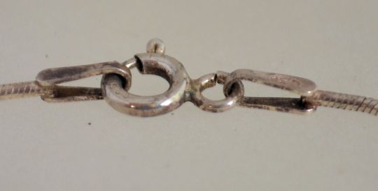 A silver chain with a crystal pendant, marked "925" it measures 41cms long for the chain and 2.3cms long for the pendant.