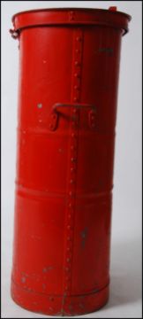 An unusual early 20th century painted metal Fire bucket Industrial Container - Fisaf Bristol. The cylinder of heavy form complete with the lid and notation. 100cm High x 56cm wide x 39cm deep