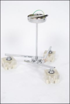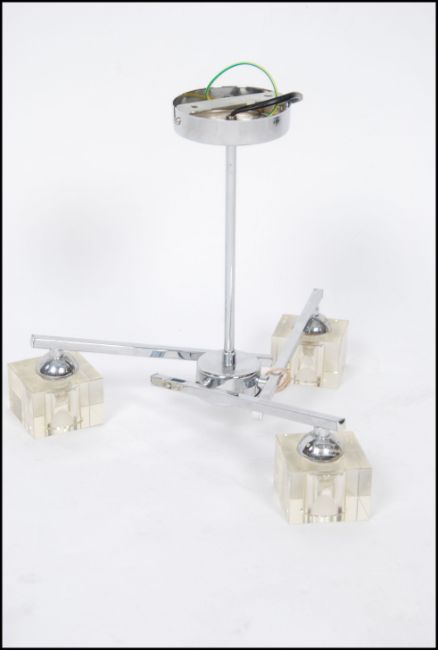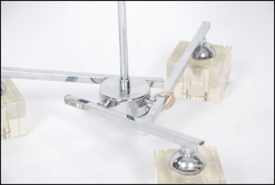 A contemporary chrome and resin set chandelier in the modernist style together with a retro 1970's ice bucket on stand in two tone colours. 33cm high x 44cm wide